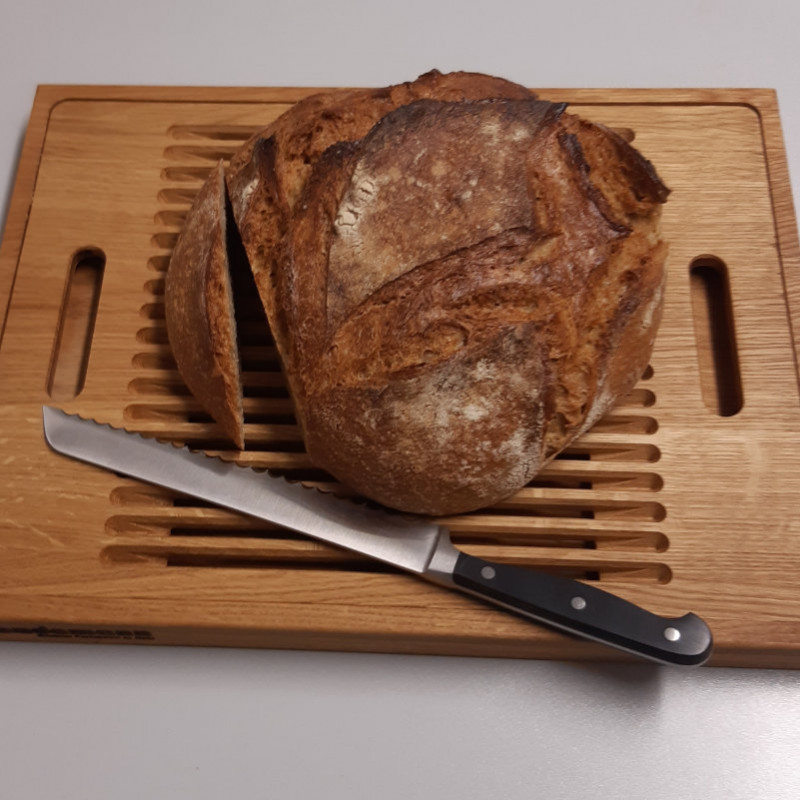 Das praktische Bröselbrett wird in Kernbuche und Eiche hergestellt. Es ist hervorragend zum Brot schneiden geeignet, da die Brösel zwischen den Streben in die Auffangschale fallen. Zum Leeren der Schale kann das Gitter abgenommen werden. Das Brett hat die Maße von 400 x 300 x 40 mm und ist mit lebensmittelechtem Öl behandelt.